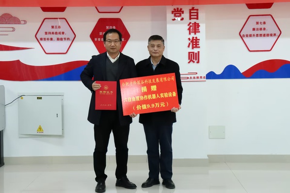 潘超详细介绍了合肥中科深谷科技发展有限公司的发展历程、核心技术优势及在智能制造领域的实践成果。他表示,企业始终高度重视产教融合工作,此次捐赠六自由度协作机器人,是企业助力高校人才培养、履行社会责任的具体体现。希望通过设备捐赠为学校教学科研提供有力支持,帮助学子近距离接触行业前沿技术、锤炼过硬实践本领,同时期待与山东航空学院进一步深化合作,在人才共育、科研共攻、成果共享等方面携手发力,共同为智能制造产业高质量发展注入新动能。